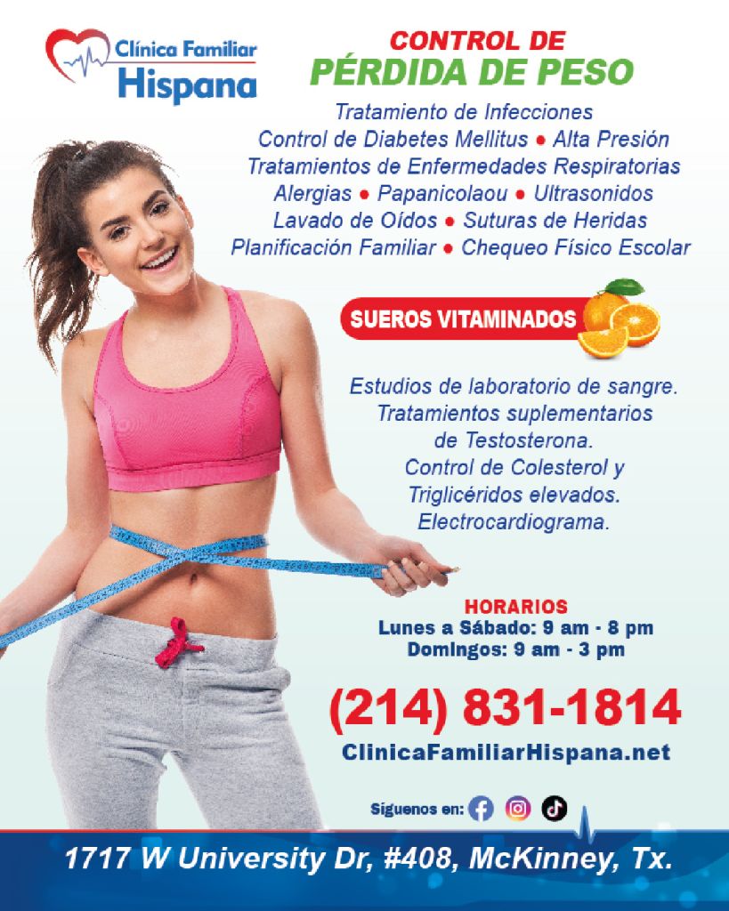 Posteos en FacebookPublicaciones en Facebook de la Clínica Familiar Hispana en Texas. ClienteClínica Familia Hispana MCKinneyFecha2025Propiedad intelectualAuthor nameGrow Marketing USAShare
